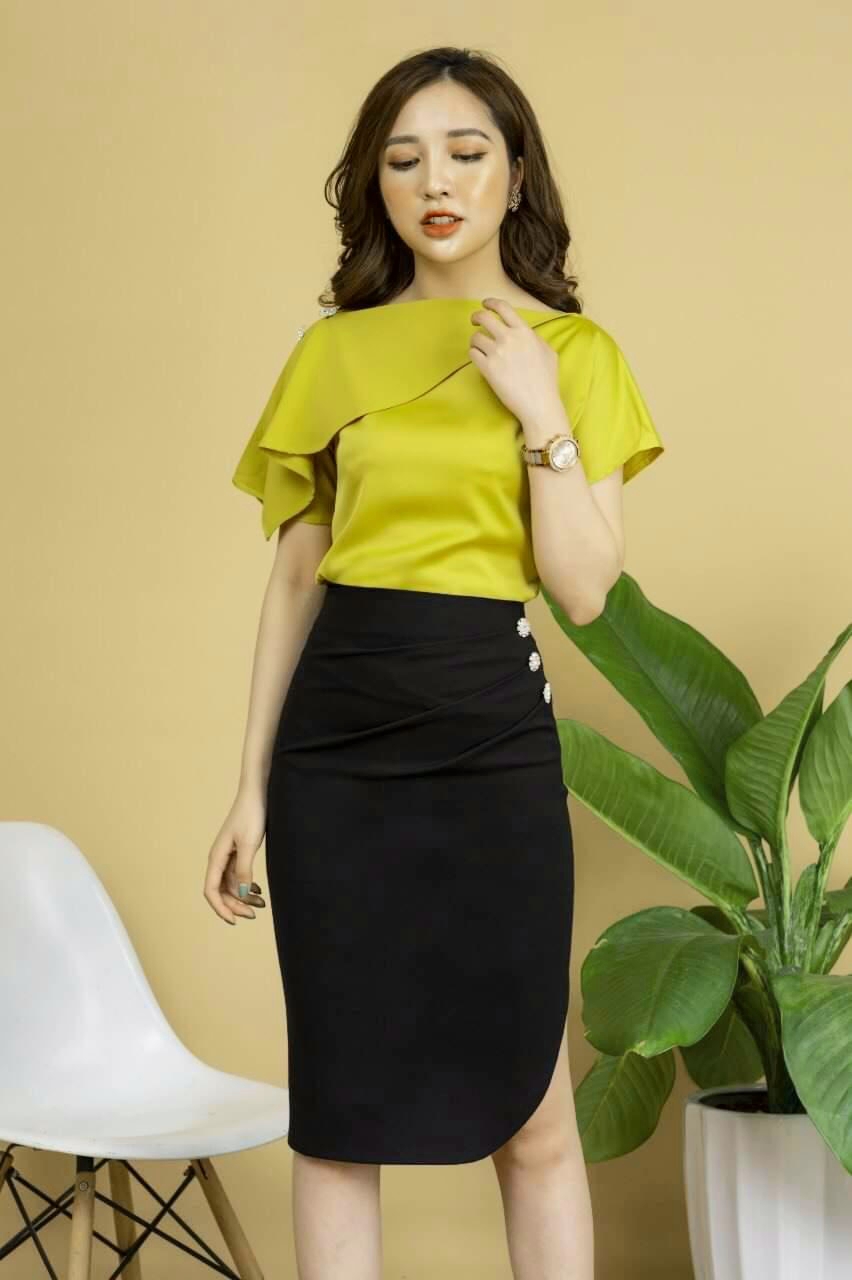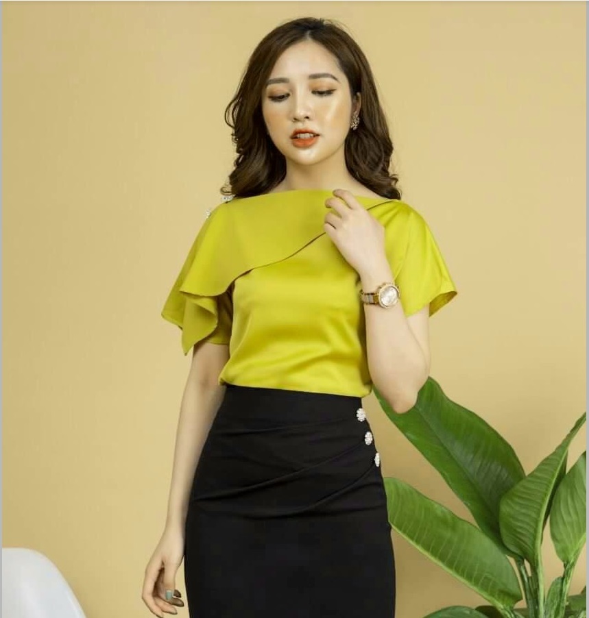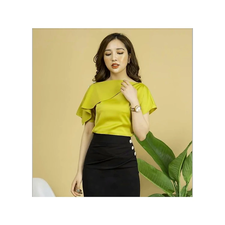 Áo Kiểu Nữ Ngắn Tay Bèo Lá xéo bên Xinh Xắn