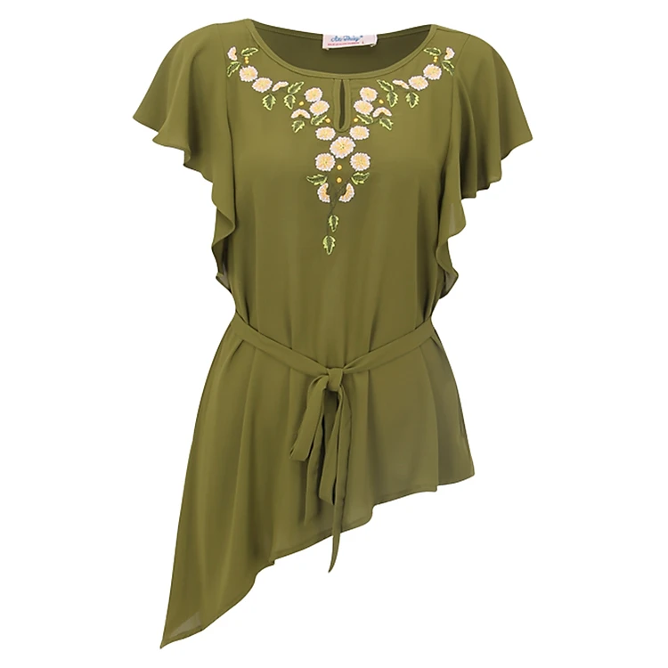 Áo Kiểu Nữ Thêu Cổ Giọt Nước An Thủy 664 - Xanh Rêu