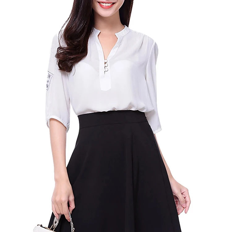 Áo Kiểu Nữ Thêu Tay An Thủy 667 - Trắng