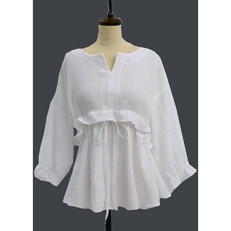 - Áo kiểu nữ trắng xinh xắn tay lỡ Morie Fashion có dây định hình eo bụng.