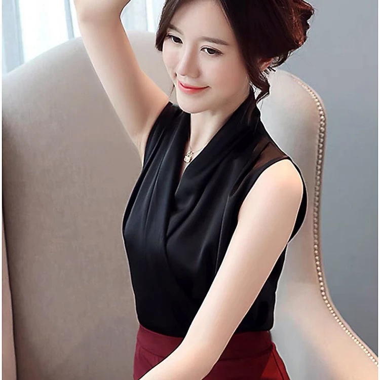 Áo kiểu nữ vải voan cổ V cách điệu - form dáng chuẩn, dễ mặc đi làm hoặc dự tiệc