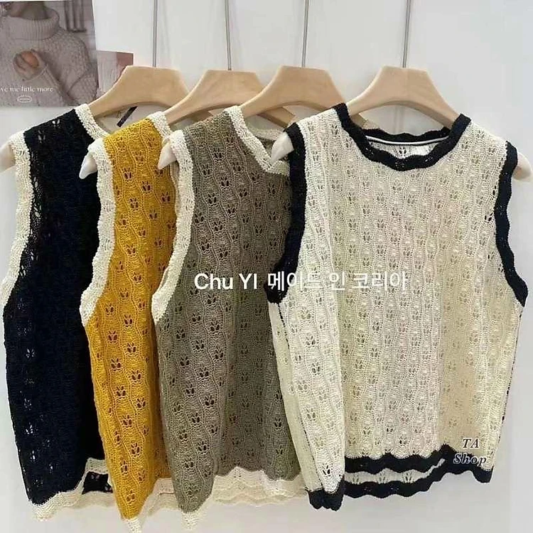 Áo len ba lỗ trơn phối viền - ảnh thật 4 màu