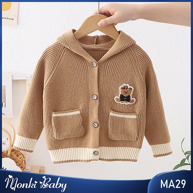 Áo len cardigan dài tay liền mũ ấm cho bé trai bé gái, túi trước thời trang, chất len dày dặn mịn chắc, mẫu cao cấp chuẩn đẹp | MA29