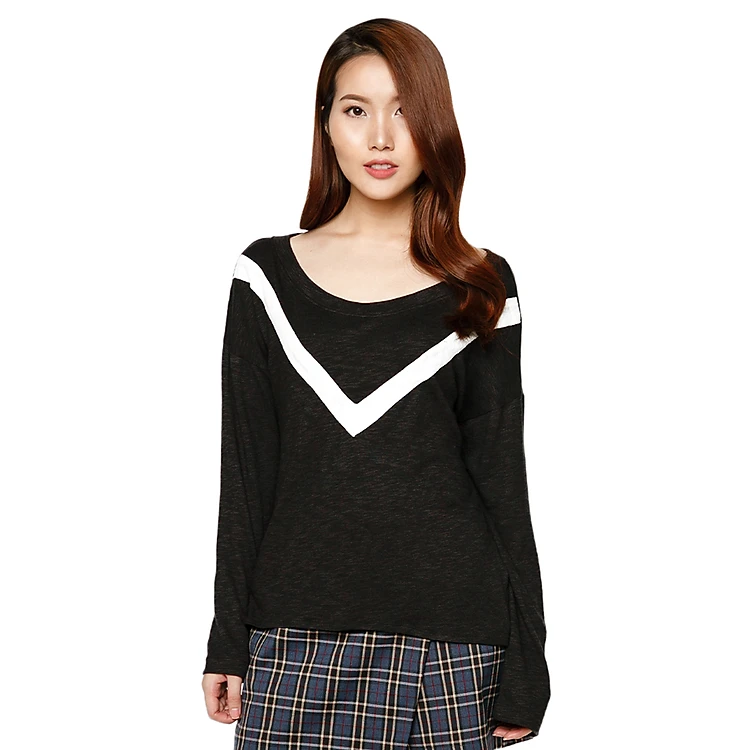 Áo Len Chữ V La Belle TS90 - Đen có kiểu dáng ngọt ngào, nữ tính với cổ thuyền khoe vai trần nuột nà phối tay dài năng động, mang lại vẻ ngoài vừa sexy vừa trẻ trung cho các cô gái trẻ. Áo có họa tiết chữ V lớn tạo điểm nhấn nổi bật và thu hút. Bạn có thể phối áo với váy mini, đầm bút chì hay Shorts Jeans để dạo phố khi rảnh rỗi.