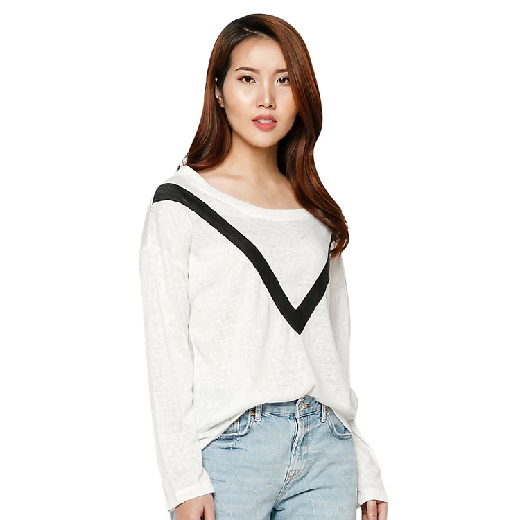 Áo Len Chữ V La Belle TS90 - Trắng có kiểu dáng ngọt ngào, nữ tính với cổ thuyền khoe vai trần nuột nà phối tay dài năng động, mang lại vẻ ngoài vừa sexy vừa trẻ trung cho các cô gái trẻ. Áo có họa tiết chữ V lớn tạo điểm nhấn nổi bật và thu hút. Bạn có thể phối áo với váy mini, đầm bút chì hay Shorts Jeans để dạo phố khi rảnh rỗi.