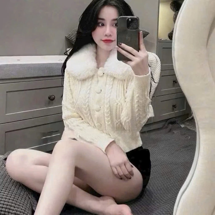 Áo len cổ lông mềm ấm 3 màu form xinh – chất dệt nổi đẹp, dễ phối