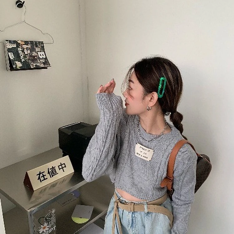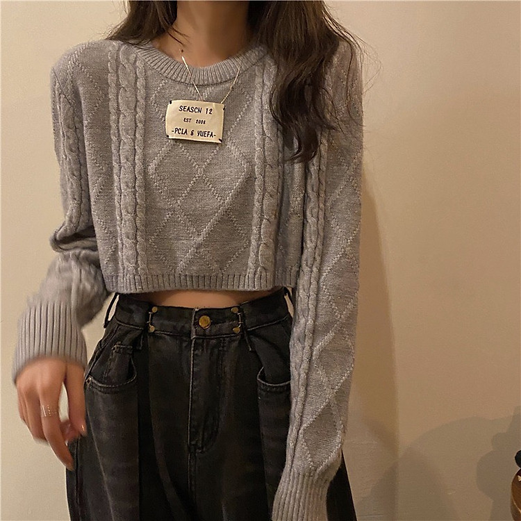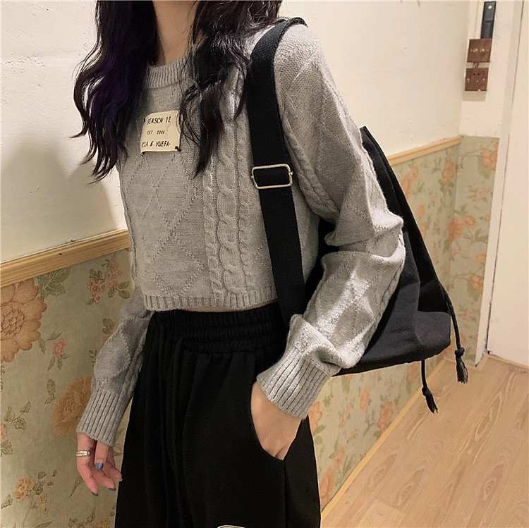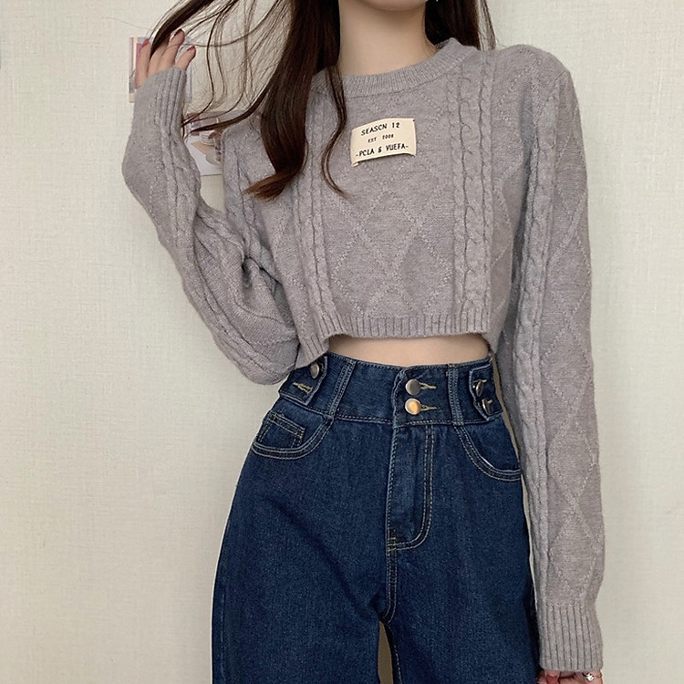 Áo len nữ Áo len croptop nữ cơ bản dễ phối đồ màu xám 2021