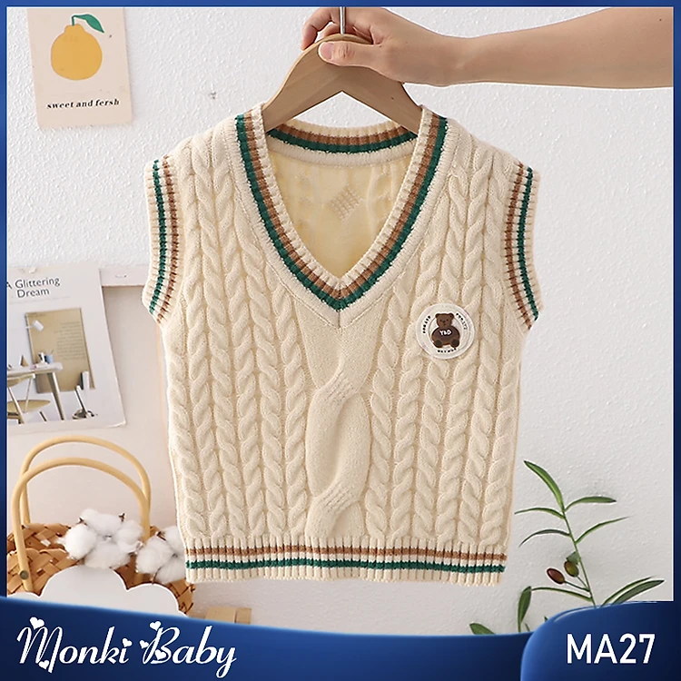 Áo len gile vặn thừng cho bé trai bé gái, đồ len chuẩn đẹp trẻ em, chất len dày dặn dai chắc, mềm mịn, giữ ấm tốt, phong cách thời trang | MA27