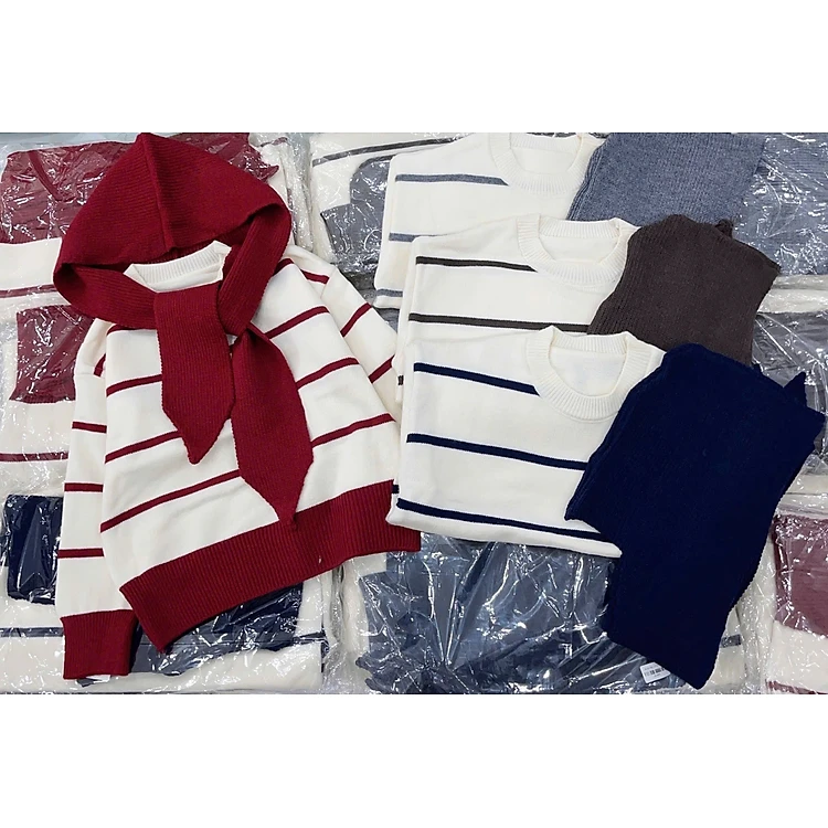Áo len kẻ kèm khăn-Form Đẹp Chuẩn Hàn, Len Dày Mịn,Hot Trend Mùa Đông