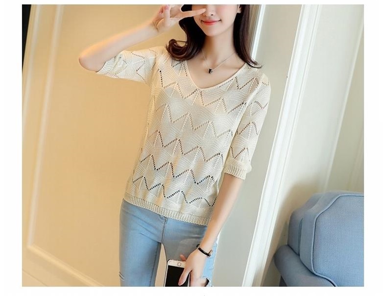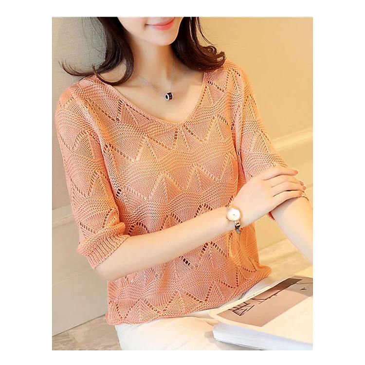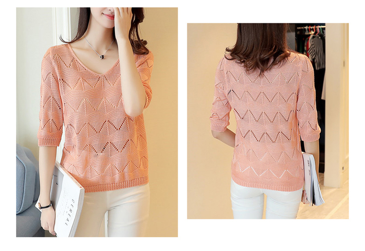 Áo len mỏng nữ cổ tim dệt quả trám ALen02