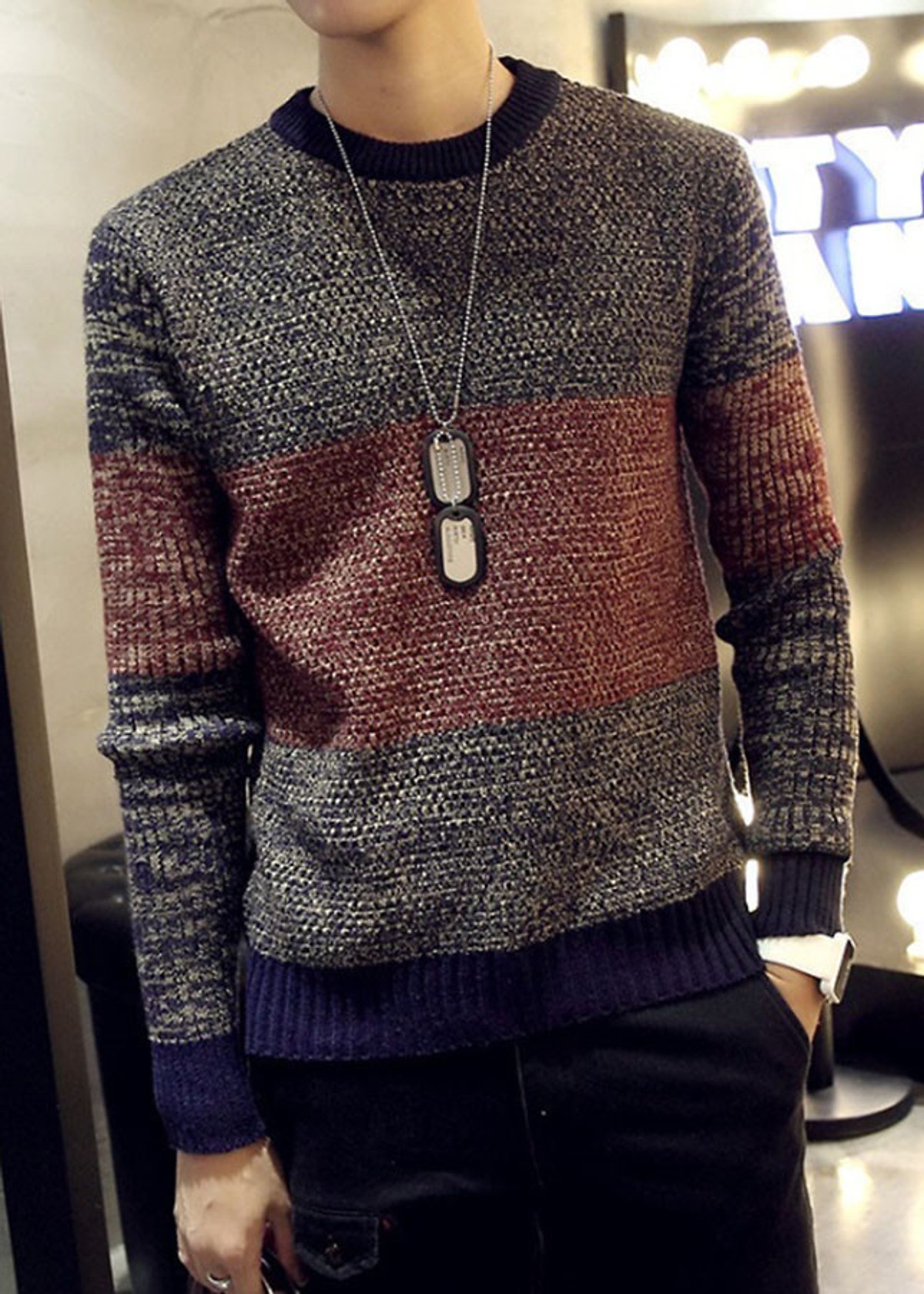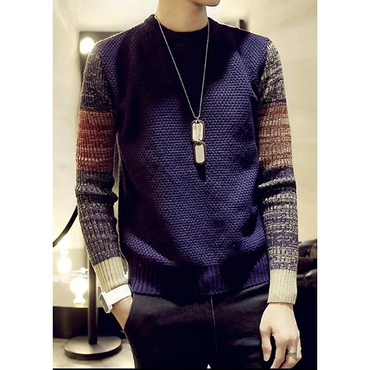 - Áo len nam cổ tròn phối màu thời trang, thích hợp mùa đông, phong cách Hàn Quốc có thiết kế cổ cao, form rộng trẻ trung và ấm áp,