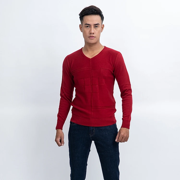 Áo len nam dài tay cổ tim màu đỏ đô NOVELTY 180570I