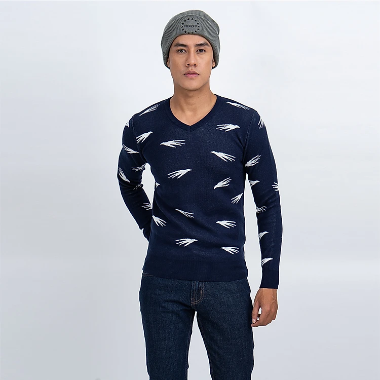 Áo len nam dài tay cổ tim màu xanh đen NOVELTY 180563I