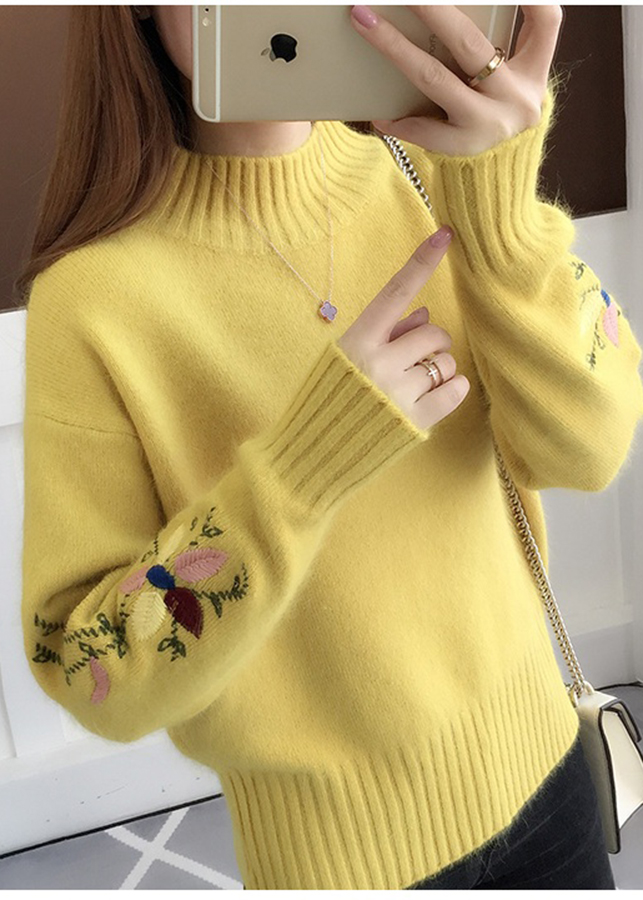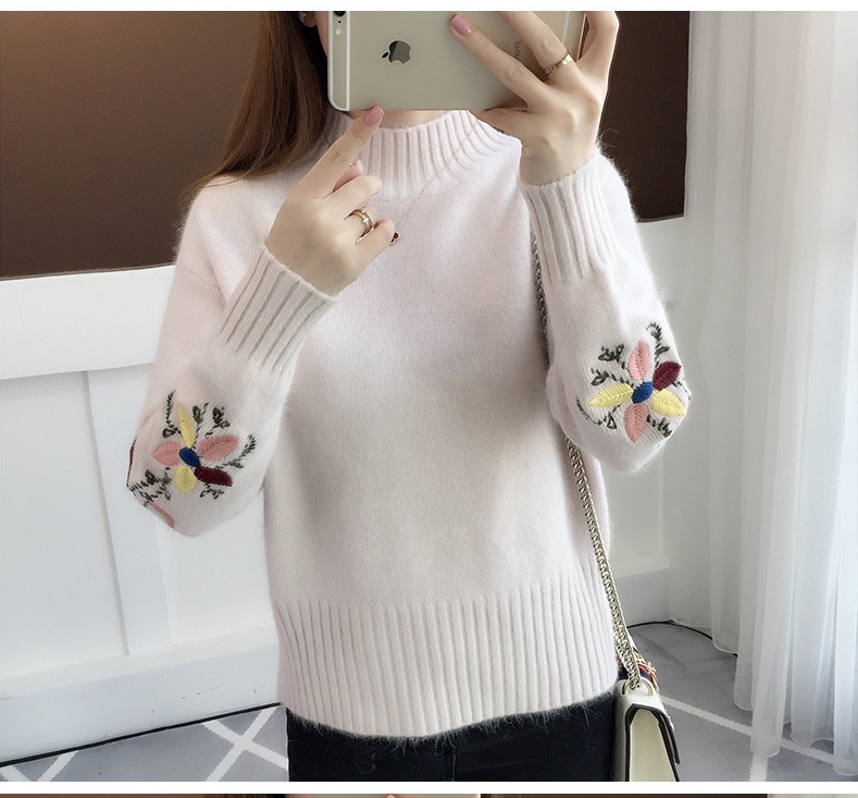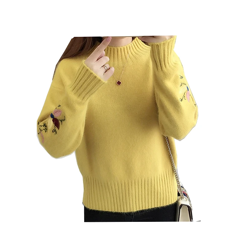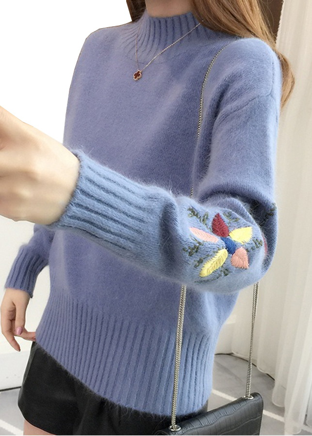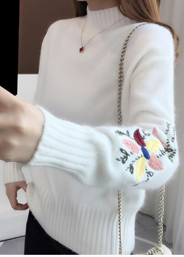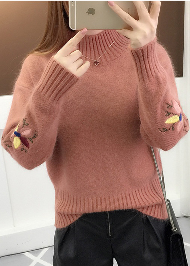Áo len nữ dài tay, tay áo thêu hoa xinh xắn