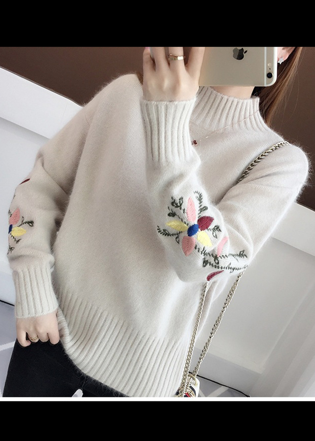 Áo len nữ dài tay, tay áo thêu hoa