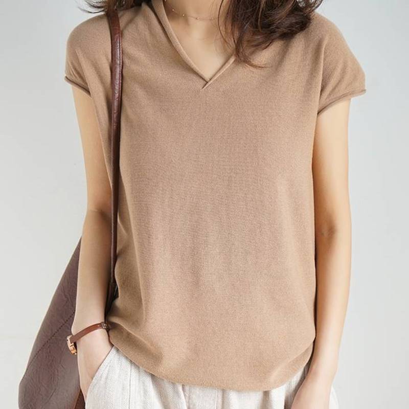 - Áo len mỏng nữ cộc tay cổ tim ALen06 với thiết kế áo cổ tim cơ bản nhưng không kém phần thời trang, form rộng mang đến cho bạn nữ nét đẹp thanh lịch, thời trang.