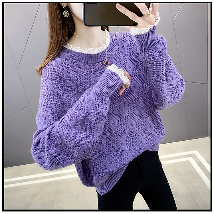 Áo len nữ thiết kế phối ren cổ và tay nữ tính xinh xắn, nhiều màu lựa chọn Al50