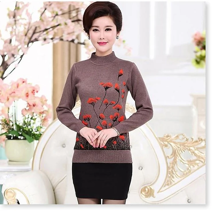 Áo Len Nữ Trung Niên Cho Mẹ In Hoa Thời Trang Cho Người Trung Tuổi U50 U60