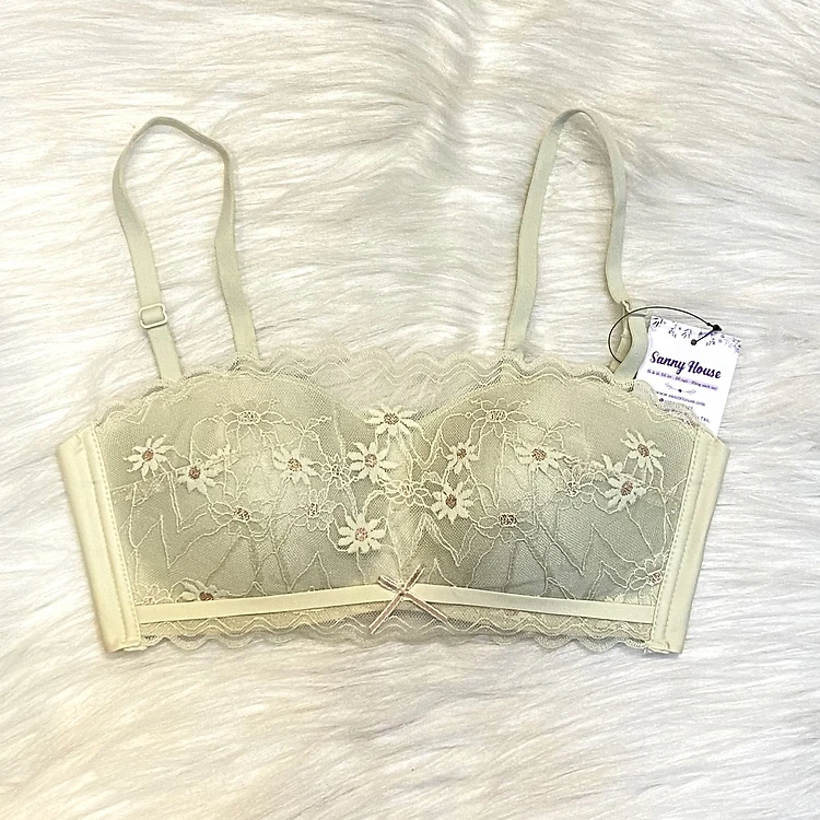 Áo lót cúp ngang hoa cúc không gọng mút mỏng kèm dây chống tuột