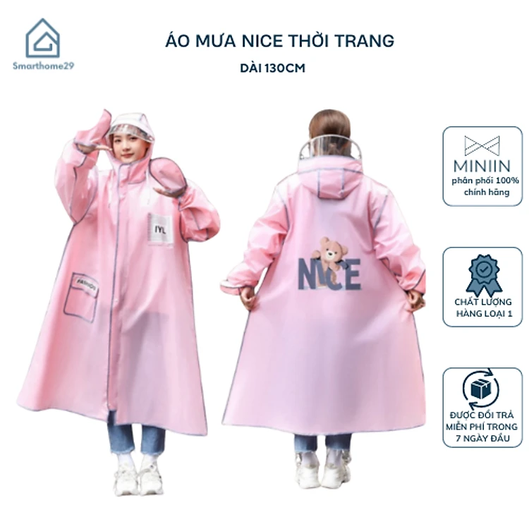 Áo Mưa Thời Trang Họa Tiết Gấu Nice Thiết Kế Thân Dài Có Kính Chắn Mưa Và Bao Tay Tiện Lợi- CÓ 4 MÀU - LOẠI 1 - HÀNG CHÍNH HÃNG MINIIN