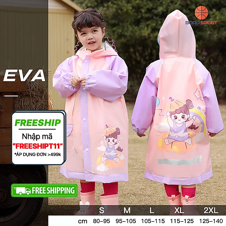 Áo mưa trẻ EM CHO BÉ TRAI BÉ GÁI CÓ CHIỀU CAO TỪ 80CM-140CM , CHẤT LIỆU eva MỀM MẠI AN TOÀN , CHỐNG THẤM , SIÊU BỀN - BORO SPORT