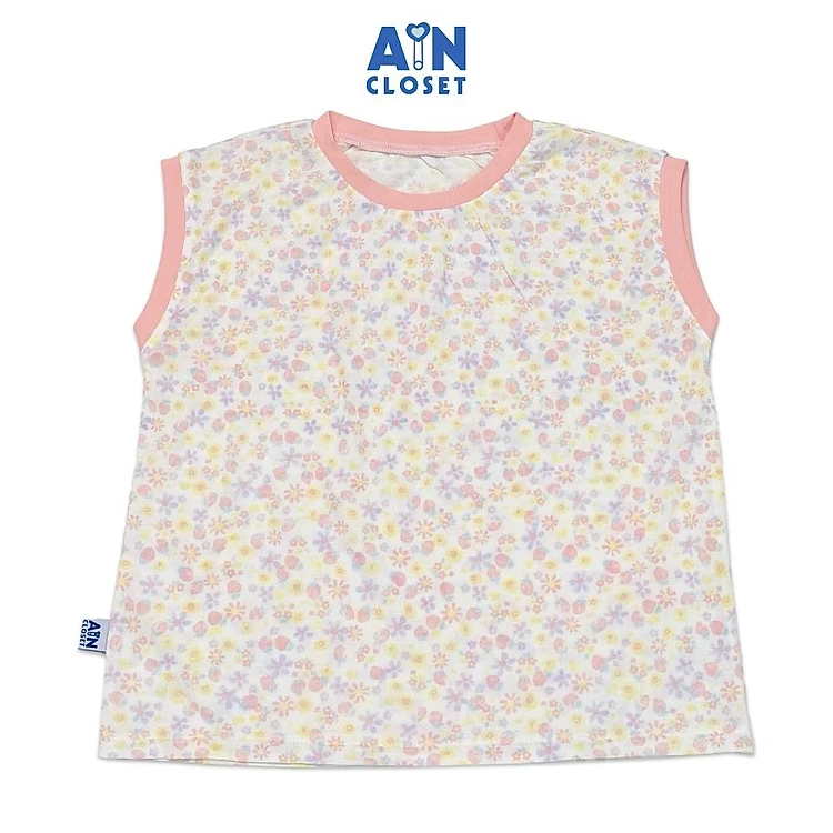 Áo ngắn tay bé gái họa tiết Hoa Nhí hồng thun giấy - AICDBGGVF4MT - AIN Closet