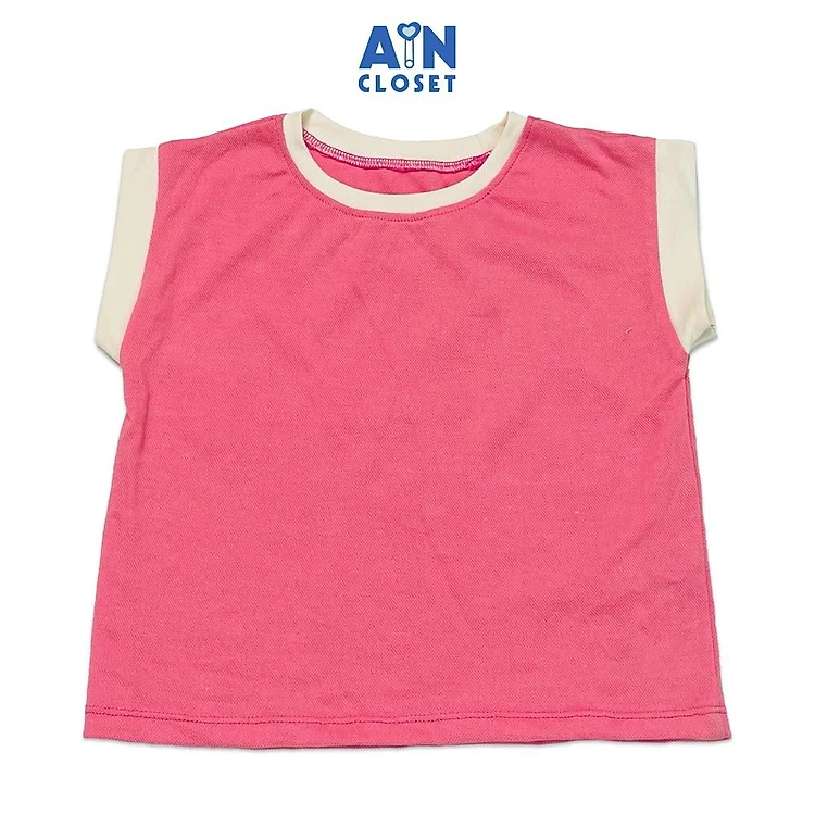 Áo ngắn tay bé gái Hồng viền trắng thun cotton - AICDBGT53EQ3 - AIN Closet