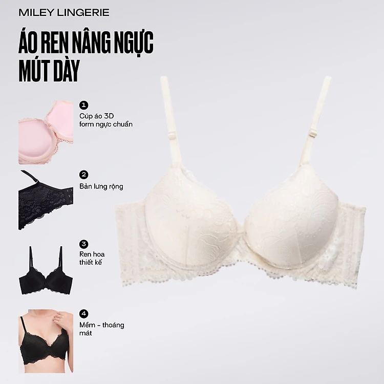 Áo Ngực Nâng Ngực Ren Nữ Mút Dày 4cm Active Miley Lingerie - Trắng BRL02001