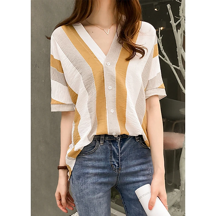 Áo sơ mi nữ được thiết kế thanh nhã với kiểu áo form rộng trẻ trung.