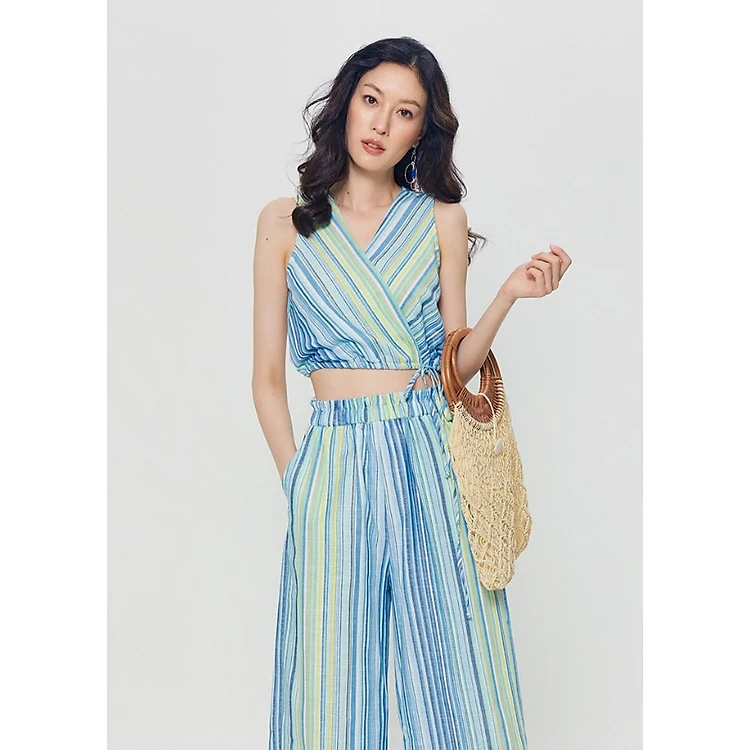 - Áo Nữ Sọc Đắp Chéo Rút Dây Marc Fashion CH072218 - Sọc Màu có kiểu dáng thời trang, tinh tế.