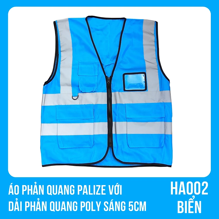 Áo phản quang Palize với dải Phản quang Poly sáng 5cm màu BIỂN - Mã HA002