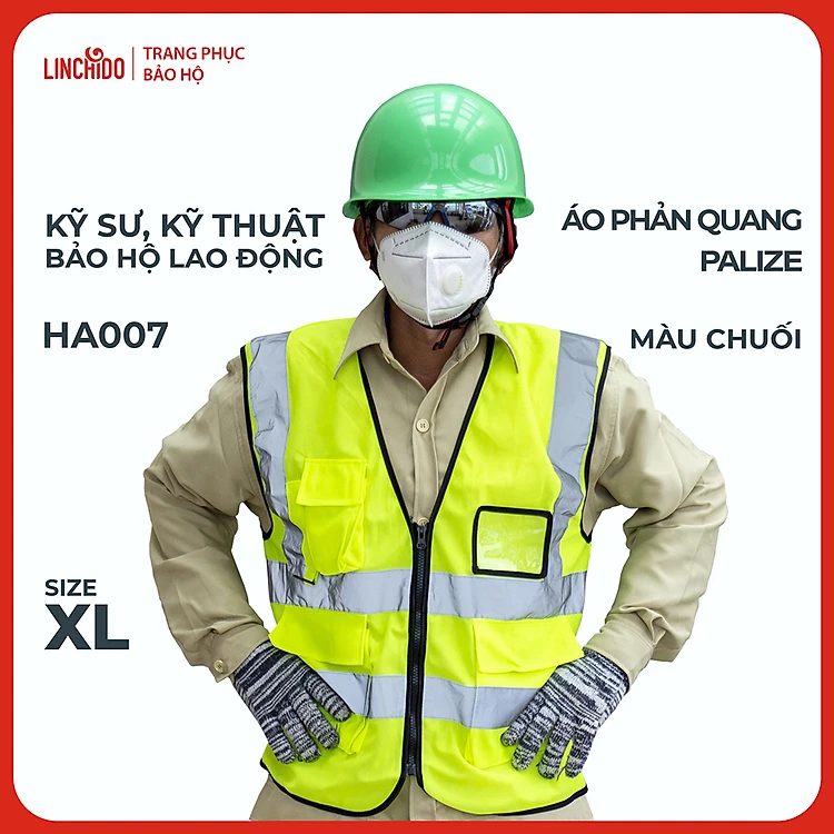Áo phản quang Palize với dải Phản quang Poly sáng 5cm màu CHUỐI - Mã HA007