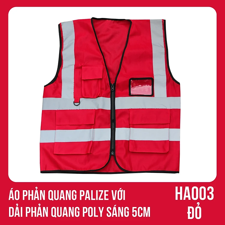 Áo phản quang Palize với dải Phản quang Poly sáng 5cm màu ĐỎ - Mã HA003