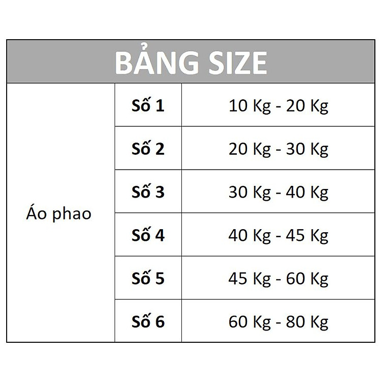 - Bảng chọn size áo.