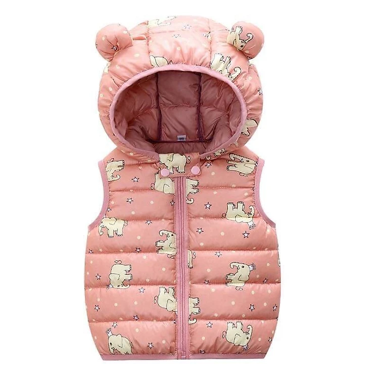 Áo phao gile tai Gấu màu hồng bé gái 1-6 tuổi thiết kế kiểu dáng tai gấu họa tiết in hình ngộ nghĩnh đáng yêu, kiểu dáng đơn giản, phong cách