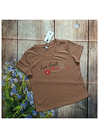 Áo phông, áo thun nữ cộc tay Vicci AP.01.3 chất liệu cotton vân gỗ in chữ Smile