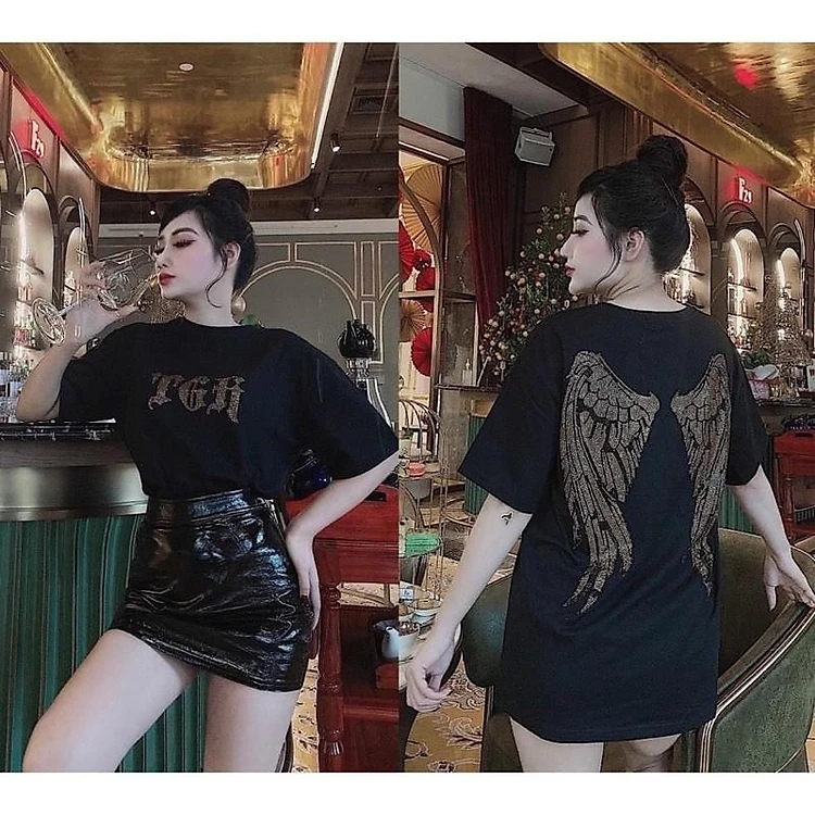 - Kiểu dáng xinh xắn với áo cổ tròn, tay lỡ họa tiết vô cùng đáng yêu, giúp bạn gái thêm tự tin với vẻ ngoài gọn gàng, dễ thương của mình.