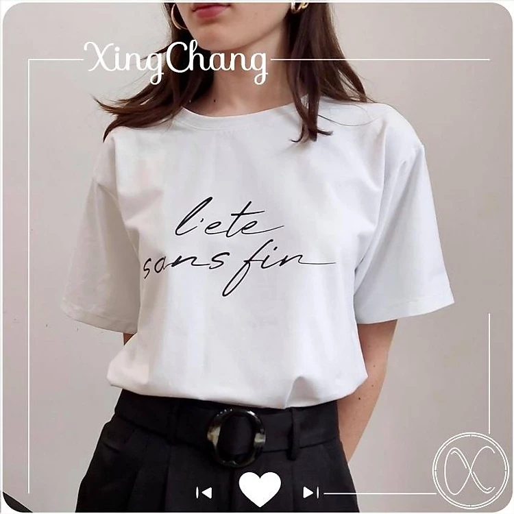 Áo phông nữ trắng basic, áo phông công sở chất mịn đẹp cá tính in Sans mã NXC05