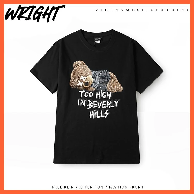 Áo Phông Rộng Dáng Unisex Gấu To High in Beverly Hills Áo Thun Thiết Kế in Phong Cách Đường Phố Âu Mỹ