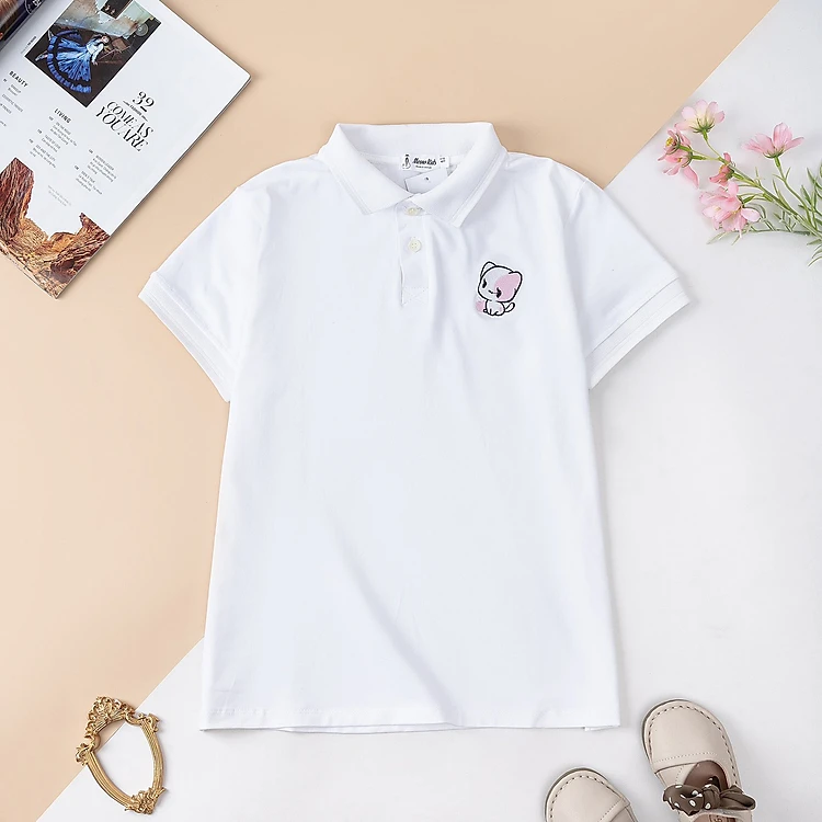 Áo Polo bé gái cộc tay 5-10 tuổi thêu hình mèo, Áo hè cho bé vải cotton cao cấp khỏe khoắn thời trang