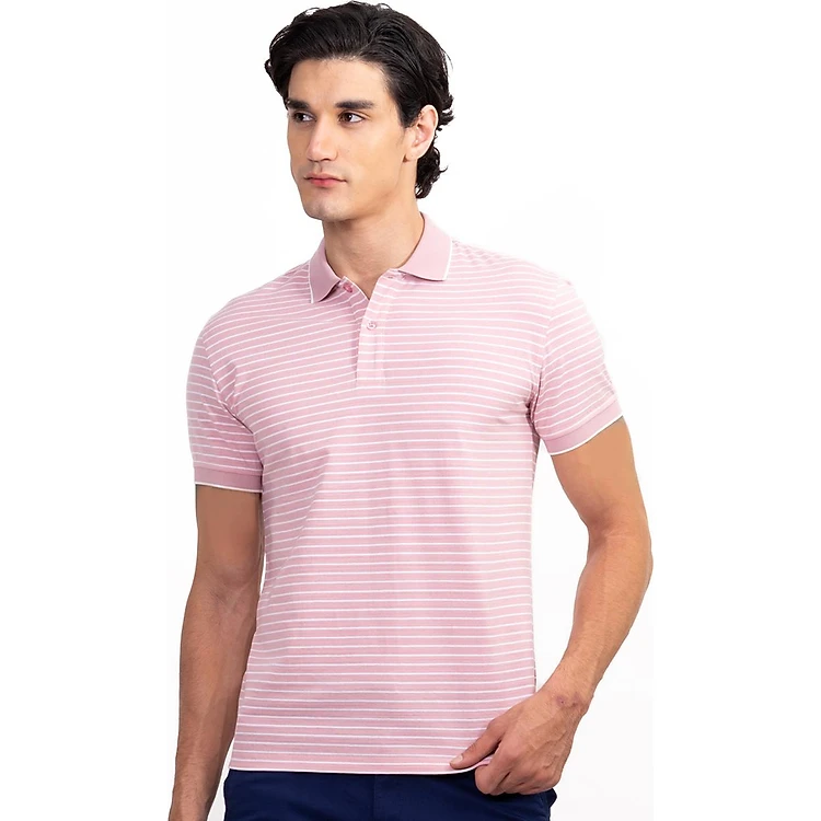 Áo Polo Nam Dệt Sọc Novelty NATMSNMCSR191047N - Hồng Trắng