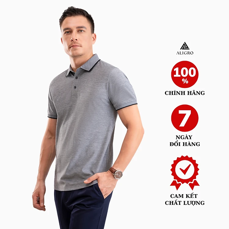 Áo Polo nam ngắn tay phối 2 màu sợi ghi-đen ALGPLO93