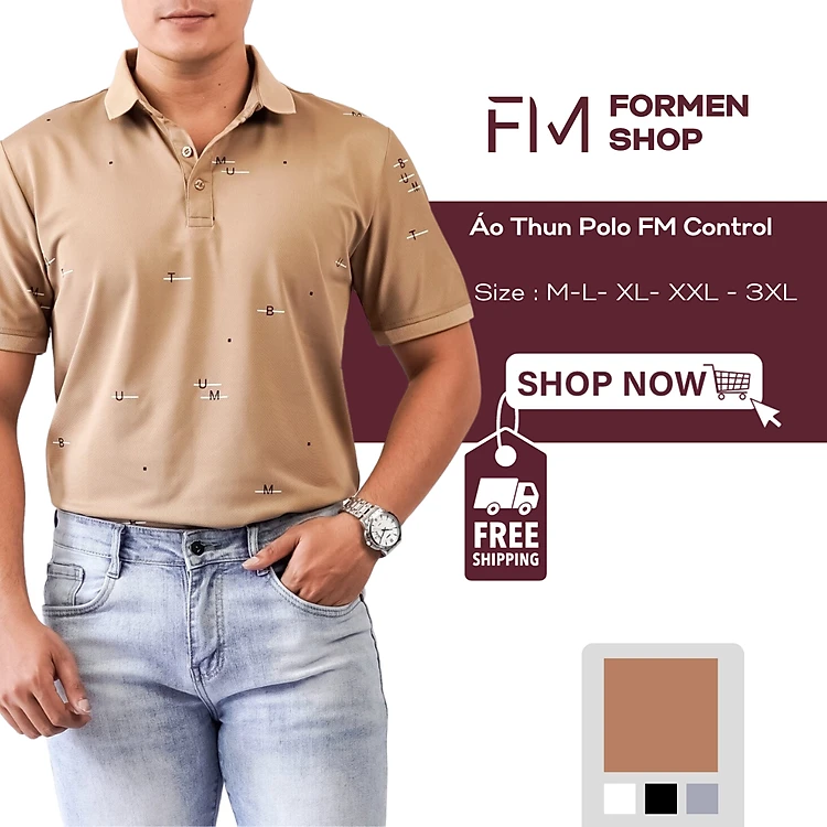 Áo polo nam phối họa tiết trẻ trung năng động, chất thun Polyester chống nhăn, chống bắm bụi - FORMEN SHOP - FMPS212