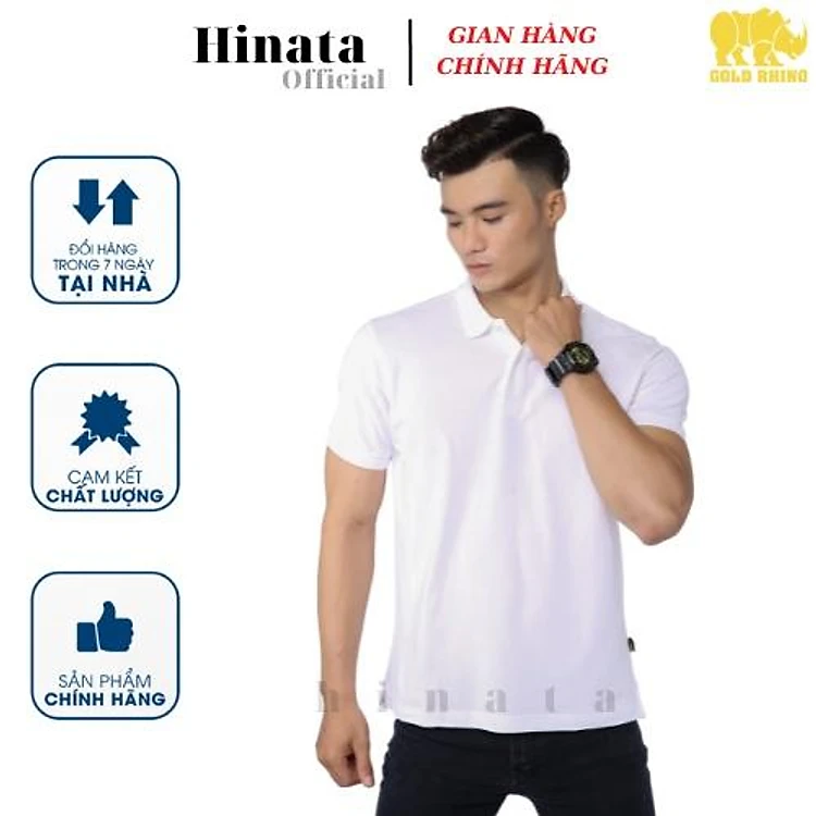Áo POLO Nam GOLD RHINO, Áo Phông Nam Basic 100 Cotton Cao Cấp Hàng Hiệu Đẹp Thoáng Mát Tay Ngắn Màu Trắng.
