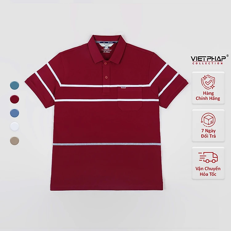 Áo Polo Nam VIỆT PHÁP Form Luxury - Thun 4 Chiều Sọc Có Túi , lịch lãm, sang trọng 2226