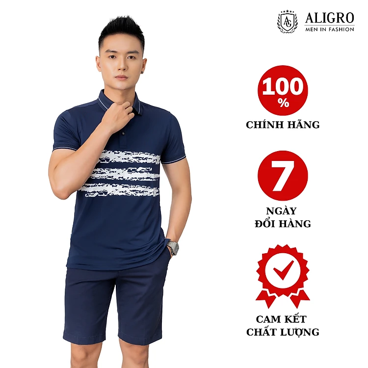 Áo Polo xanh navy phối kẻ ngang Aligro ALGPLO72