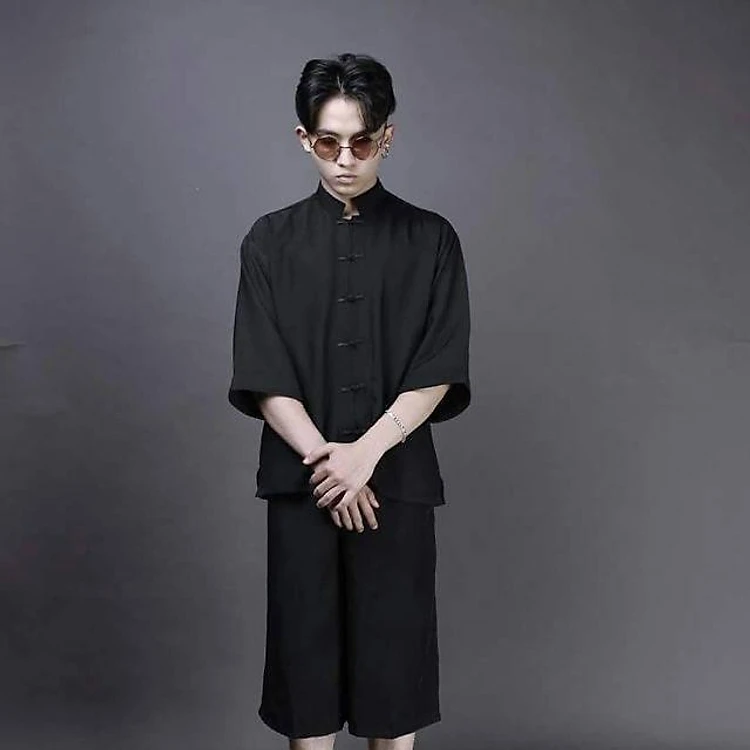 Áo sanghai trơn NAM ( sơ mi shanghai cổ tàu đen trơn )