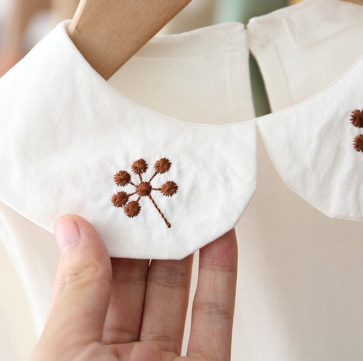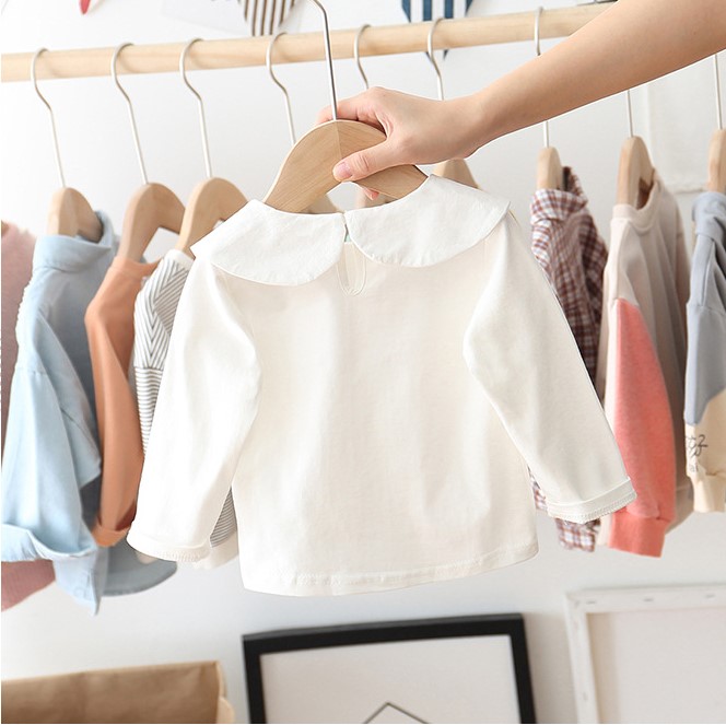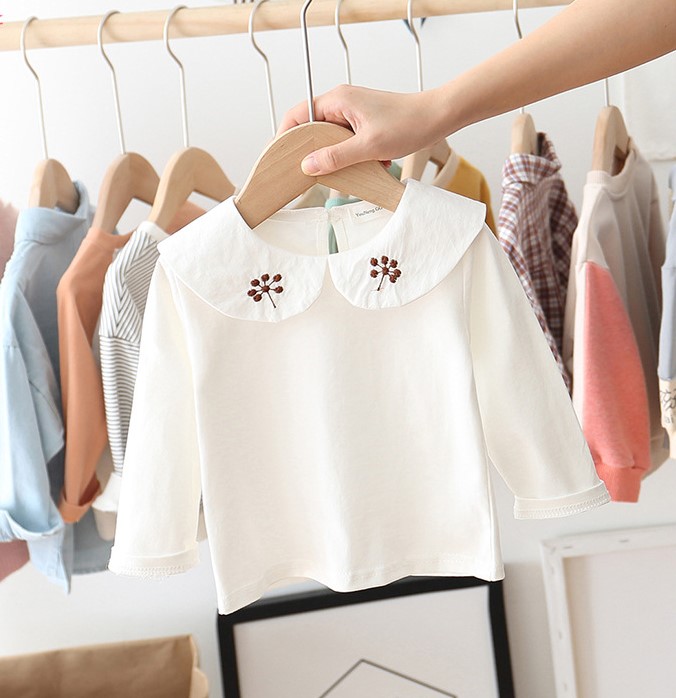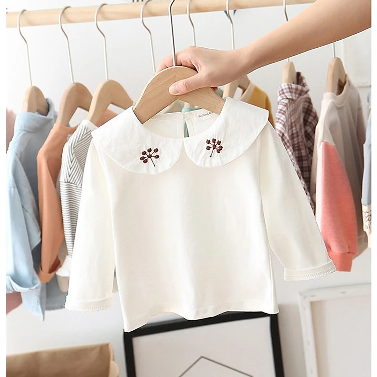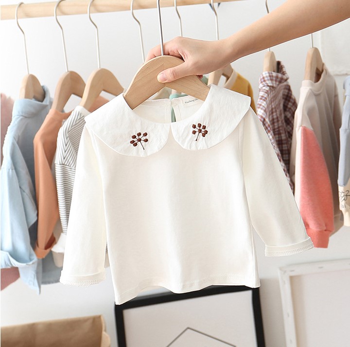Áo sơ mi bé gái chất thun màu trắng thêu hoa cổ