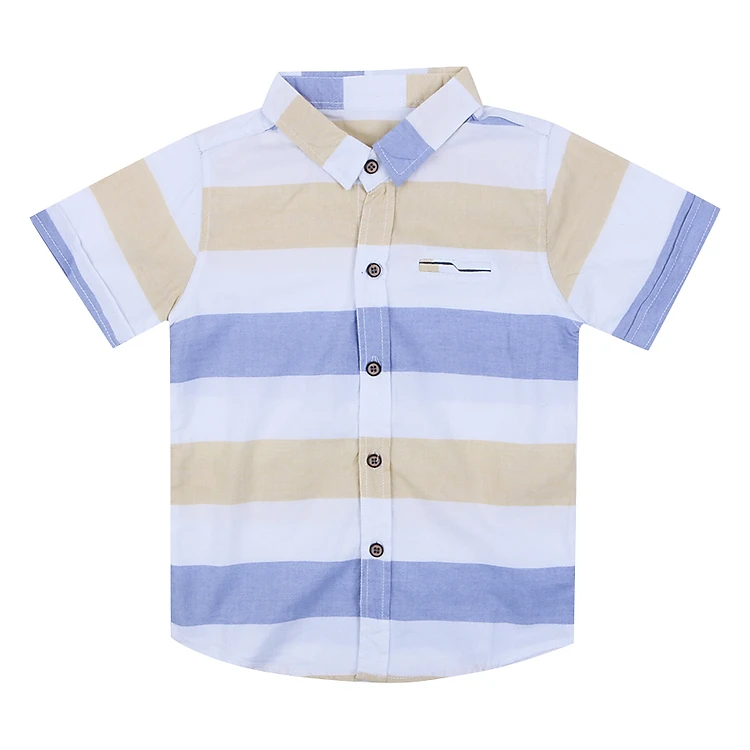 Áo Sơ Mi Bé Trai Tay Ngắn Nanio F0410 – Sọc Trắng Xanh Vàng