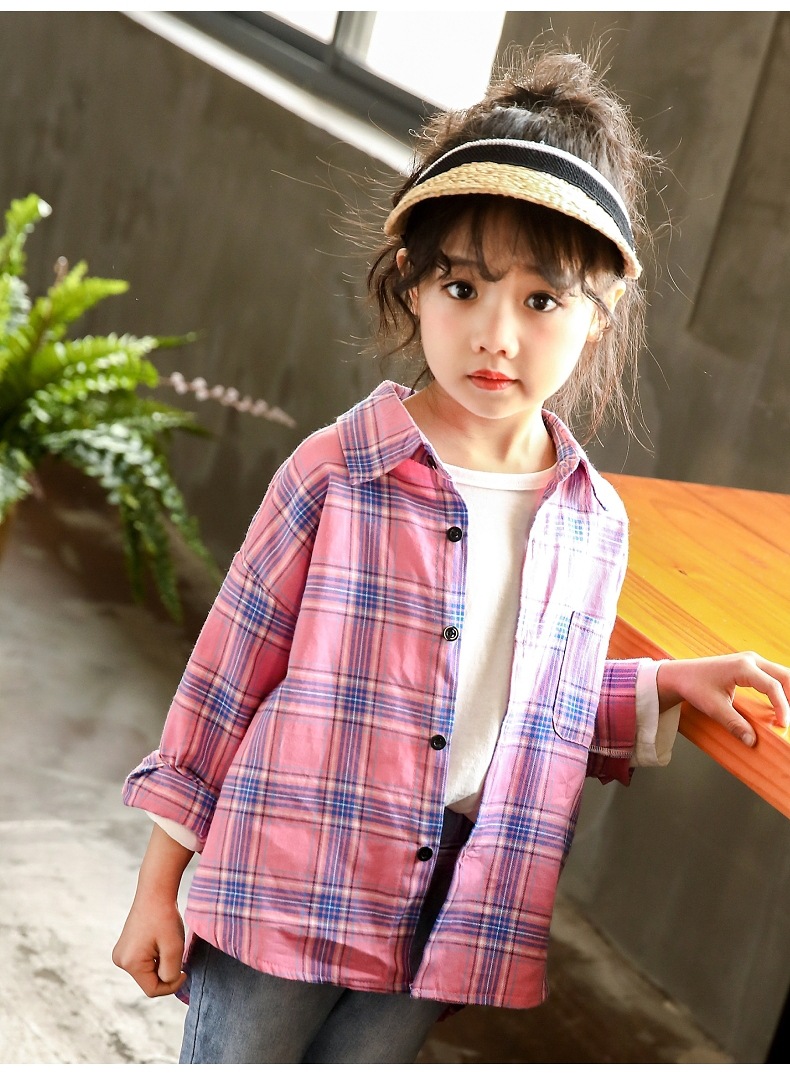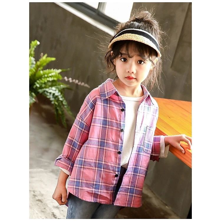 Áo sơ mi caro bé gái kiểu dáng cá tính